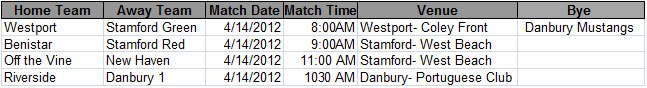 The season is finally here! Good luck to all teams, and remember, all players must be registered and have their insurance paid before they can play. Here’s the schedule for this weekend:
